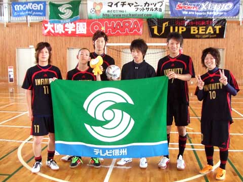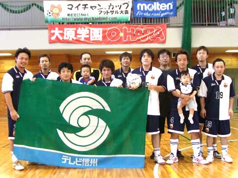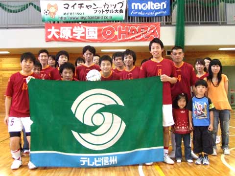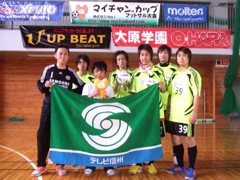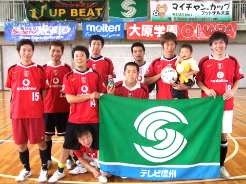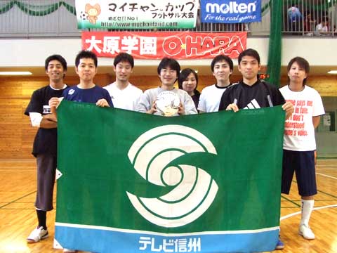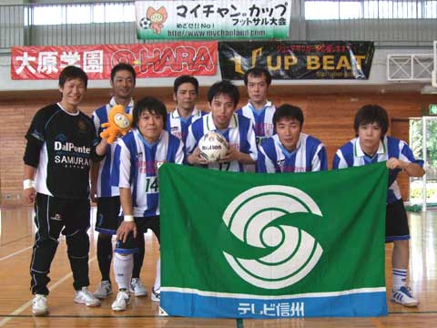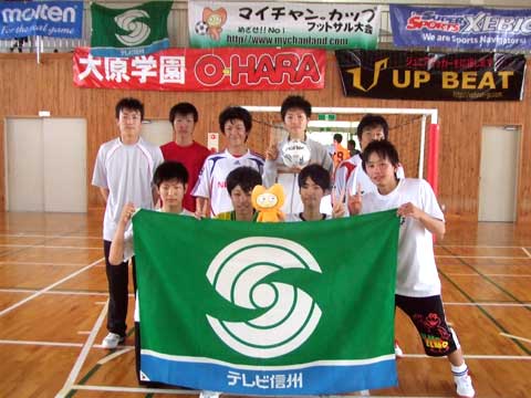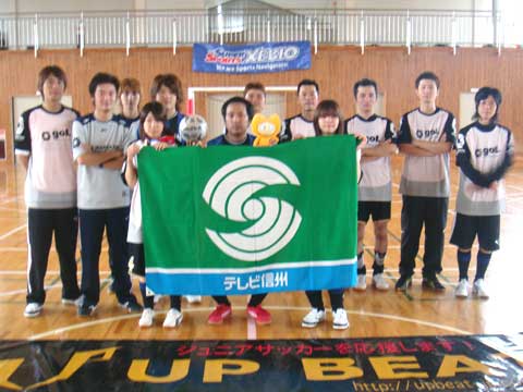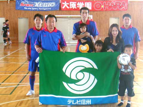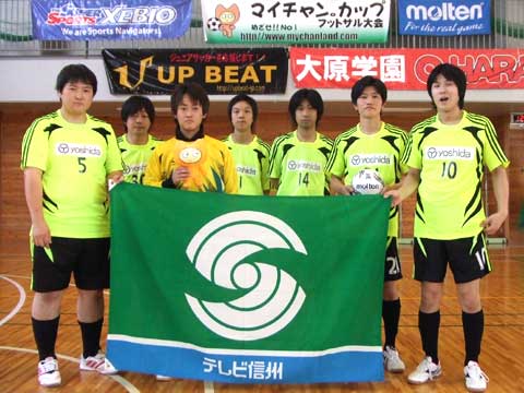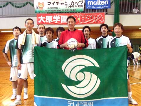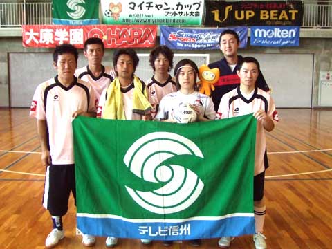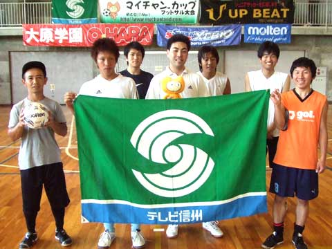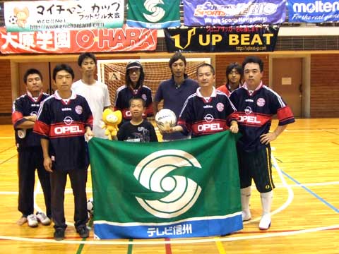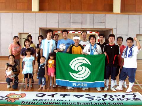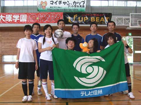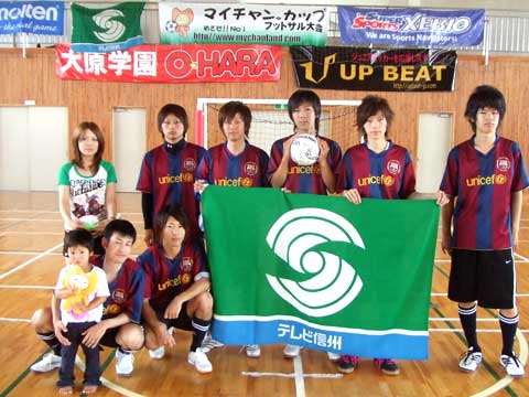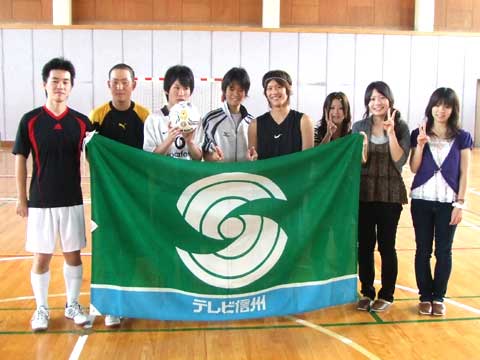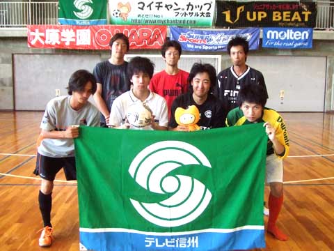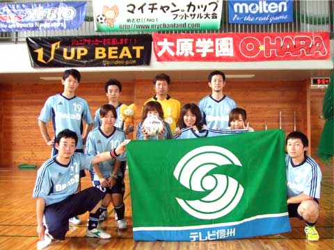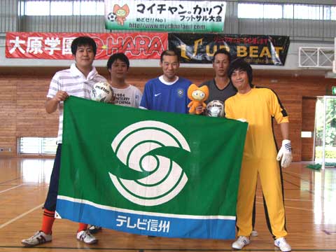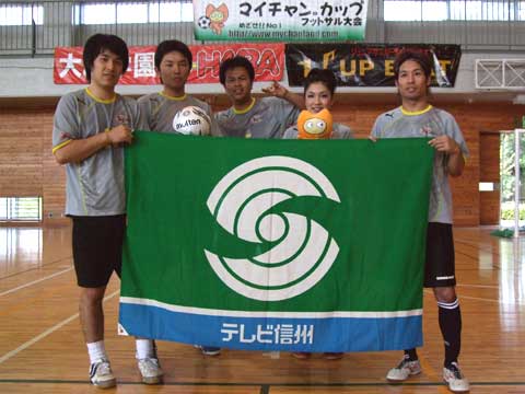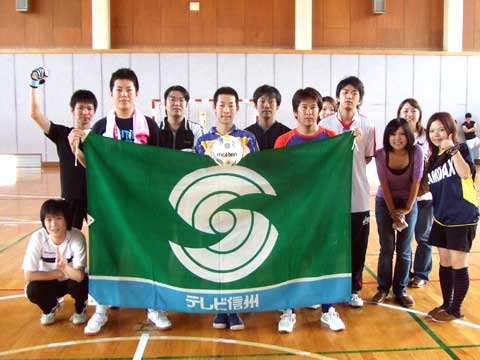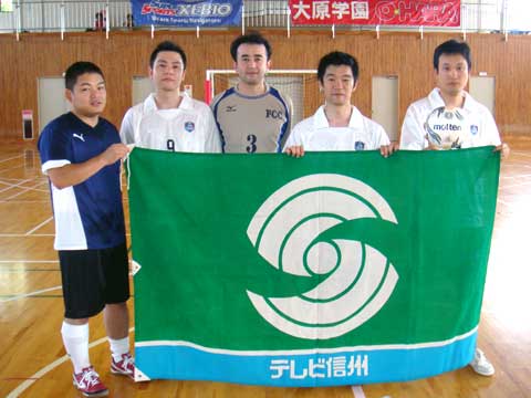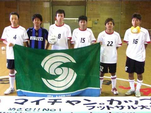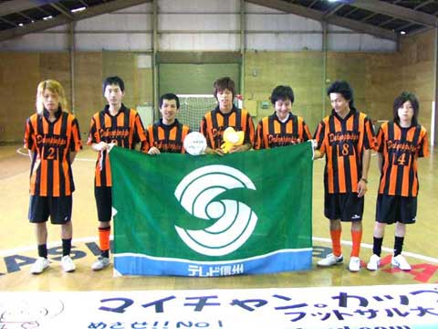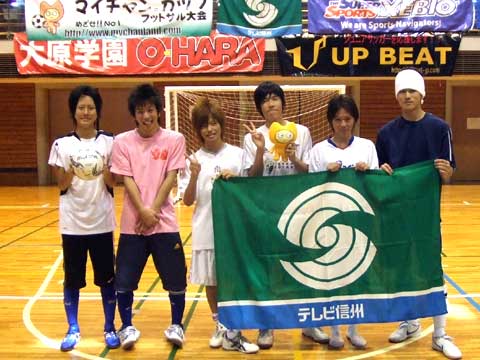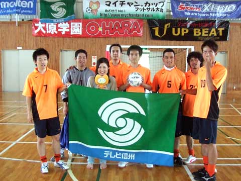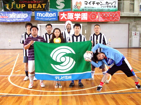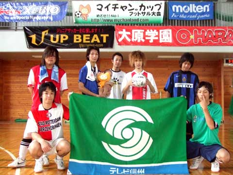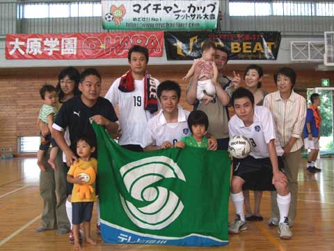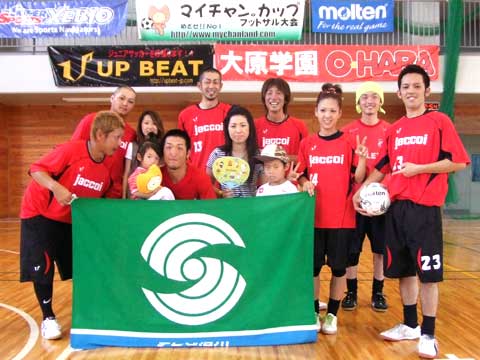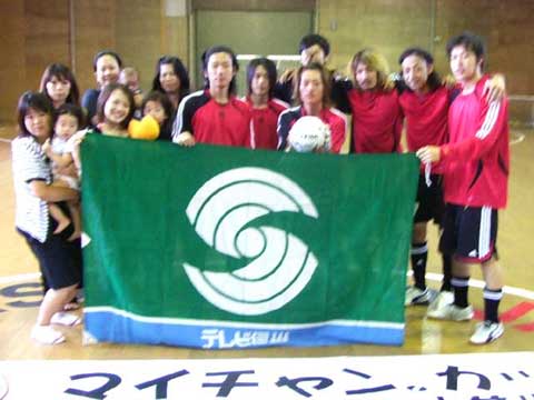| 夜は抜群のチームワークのこのメンバーで今回はフットサルに挑戦しした。 大会屈指の美女サポーターの声援を受け頑張ります!! |