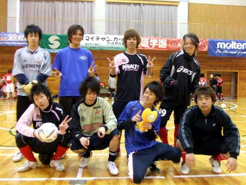 | 我々は、健康を一番に考えメタボを防ぐ為、日夜(主に夜)スポーツを楽しんでいる団体です。 結成当時は、練習より居酒屋に行くことが多かったですが、今や酒よりフットサル一筋で頑張っています。 |