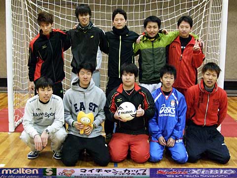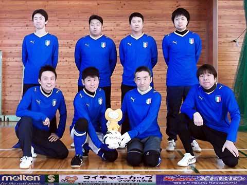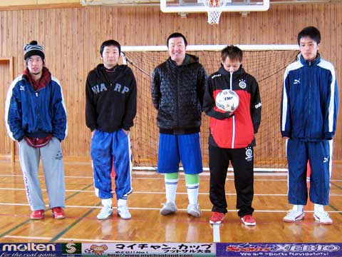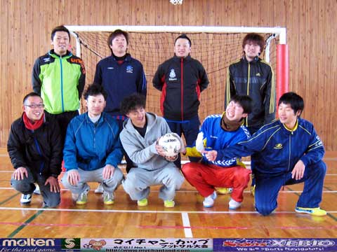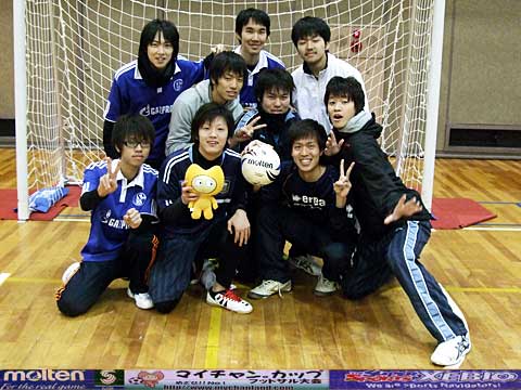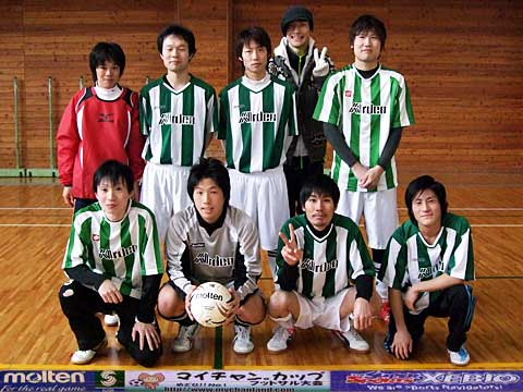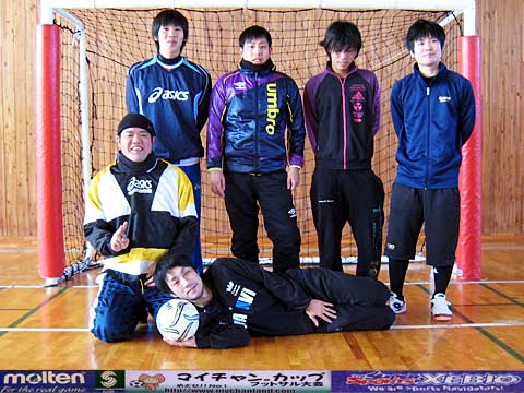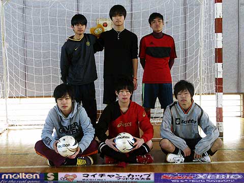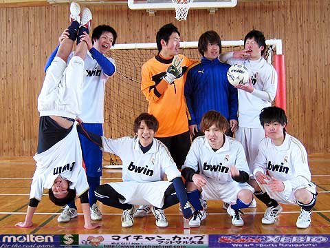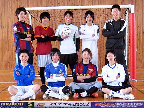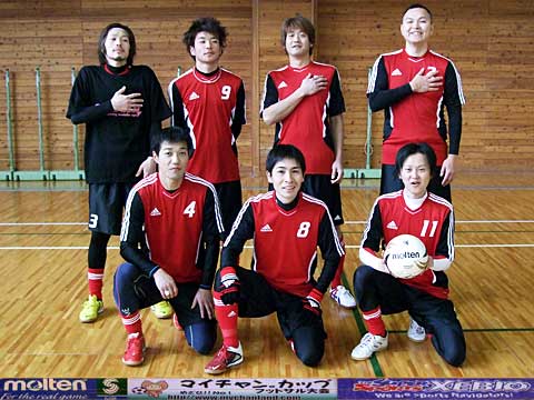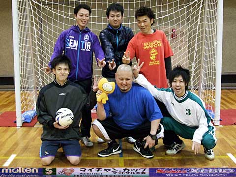 | 元サッカー部4人、野球部1人、バスケ部1人、バドミントン部1人、ヴァイオリニスト1人の異色チーム。 我々が言えることはただひとつ・・・ 恋もフットサルも切り返しが大事です。ピヤーーーー!! |